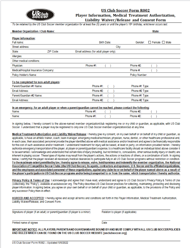 A USClub Soccer membership ID is required in order to participate in the Fall Competitive League. Please fill out form and return to your managers. Purchase your Membership Card below